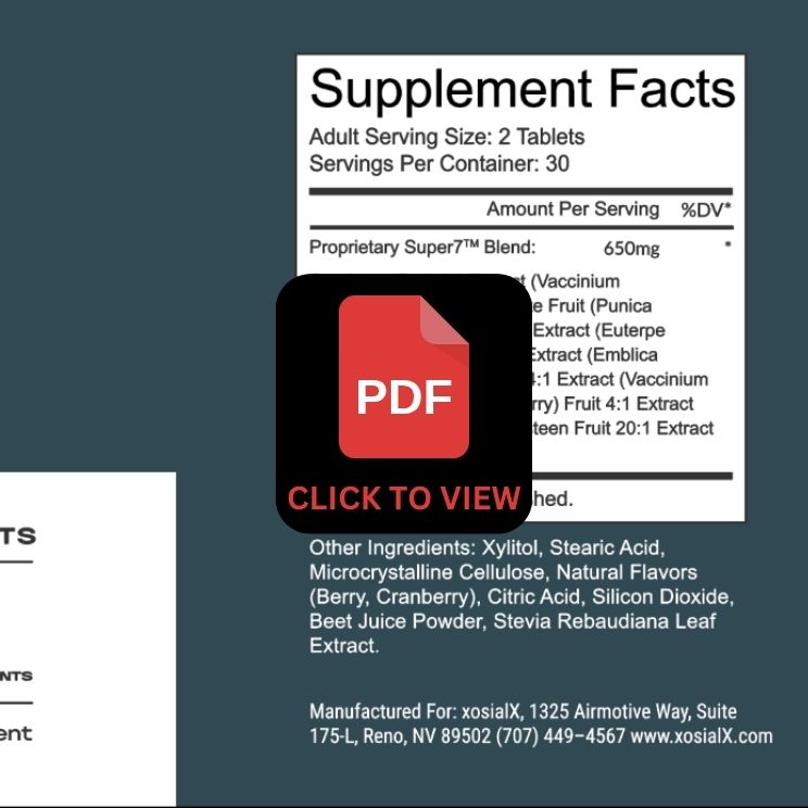 Super7 is a delicious, nutrient-packed chewable featuring seven powerhouse superfruits: Amalaki, Acai, Goji, Mangosteen, Pomegranate, Blueberry, and Cranberry. This potent blend delivers essential vitamins, antioxidants, and enzymes to support immune health, energy, and overall wellness. Together, these superfruits work synergistically to give your body a natural boost of vibrant nutrition—anytime, anywhere!